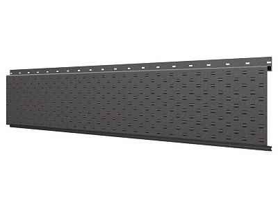Линеарная потолочно-стеновая панель с ПЕРФОРАЦИЕЙ для вентиляции цвет RAL8019 Горький Шоколад HighGlossMatt Корея применяется в качестве софитов для подшивы крыши, наружной и внутренней отделки потолков, стен, фронтонов фасада дома в Бишкеке.