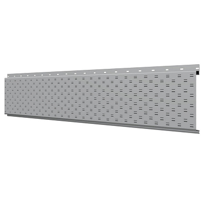 Линеарная потолочно-стеновая панель с ПЕРФОРАЦИЕЙ для вентиляции цвет RAL7004 Серый применяется в качестве софитов для подшивы крыши, наружной и внутренней отделки потолков, стен, фронтонов фасада дома в Бишкеке.