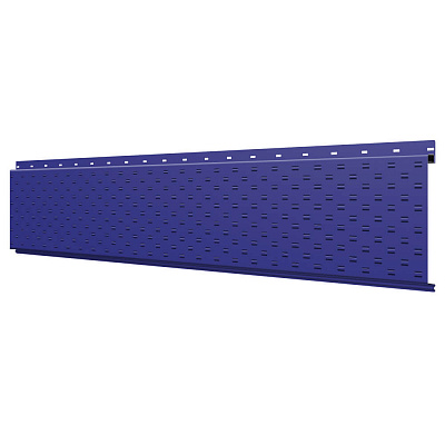 Линеарная потолочно-стеновая панель с ПЕРФОРАЦИЕЙ для вентиляции цвет RAL5002 Синий Ультрамарин применяется в качестве софитов для подшивы крыши, наружной и внутренней отделки потолков, стен, фронтонов фасада дома в Бишкеке.