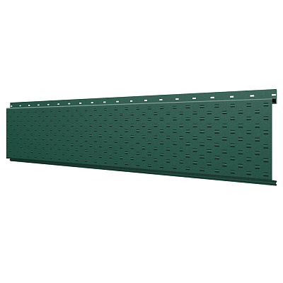 Линеарная потолочно-стеновая панель с ПЕРФОРАЦИЕЙ для вентиляции цвет RAL6005 Зеленый Мох Стальной Бархат применяется в качестве софитов для подшивы крыши, наружной и внутренней отделки потолков, стен, фронтонов фасада дома в Бишкеке.
