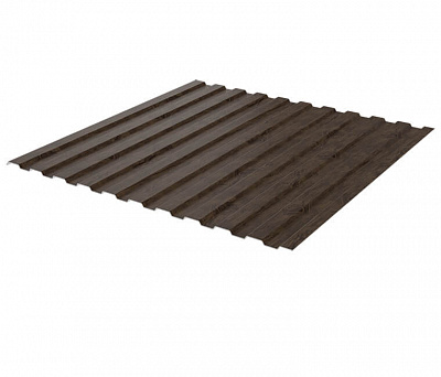 Маркировка «С» обозначает, что профлист предназначен для возведения стен, цифра 8 — это высота профиля 8 мм, число 1150 — рабочая ширина листа в мм. Производится из рулонной стали оцинкованной с полимерным покрытием под дерево Каштан 2-х сторонний 0.45мм Printech (Корея).