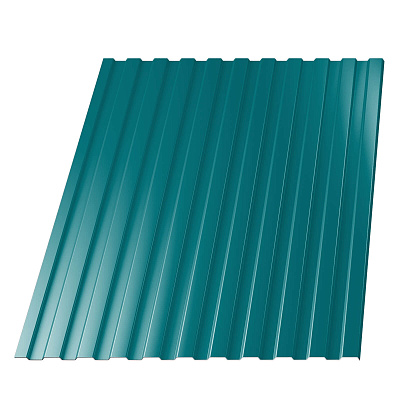 Маркировка «С» обозначает, что профлист предназначен для возведения стен, цифра 8 — это высота профиля 8 мм, число 1150 — рабочая ширина листа в мм. Производится из рулонной стали оцинкованной с полимерным покрытием RAL5021 Морская волна 0.40мм эконом.