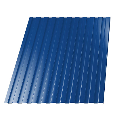 Маркировка «С» обозначает, что профлист предназначен для возведения стен, цифра 8 — это высота профиля 8 мм, число 1150 — рабочая ширина листа в мм. Производится из рулонной стали оцинкованной с полимерным покрытием RAL5005 Синий Сигнал 0.45мм.