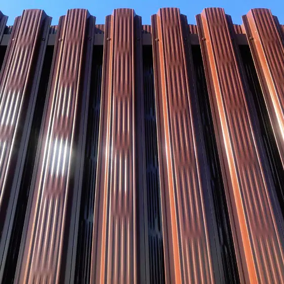 Оригинальный забор из евроштакетника с неповторимым профилем «Австрийская Плетёнка» в изысканном шоколадном оттенке RAL 8017 стал настоящим украшением участка. Двустороннее покрытие и шахматное заполнение придают конструкции объём и динамику, а продуманная форма делает забор не только красивым, но и долговечным. Такой забор — это акцент, который подчеркнёт стиль вашего дома и надолго сохранит безупречный внешний вид!